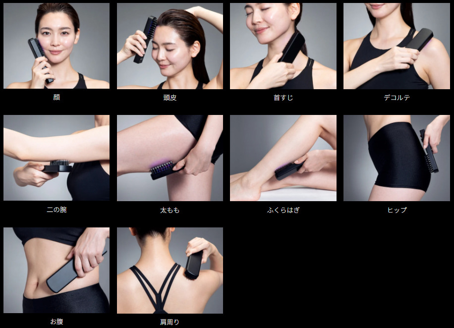 ブライト エレキブラシの基本的な使い方から、部位別の使用方法まで解説しています。
