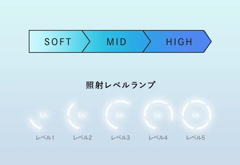 照射モードを選択すると肌色センサーが作動し、照射レベルが自動で設定されます。